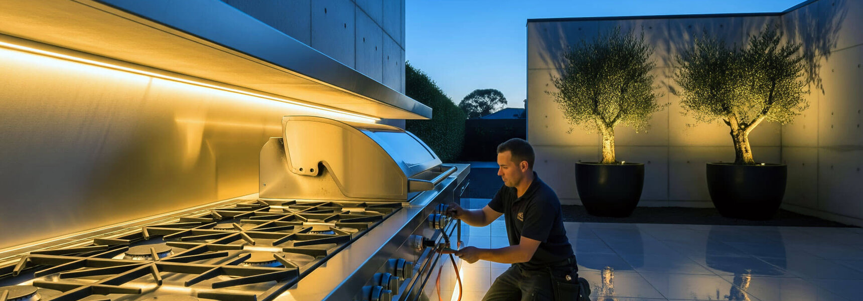 Specialised outdoor gas barbecue installation connecting to existing gas lines with proper setup, allowing you to enjoy safe alfresco cooking year-round.